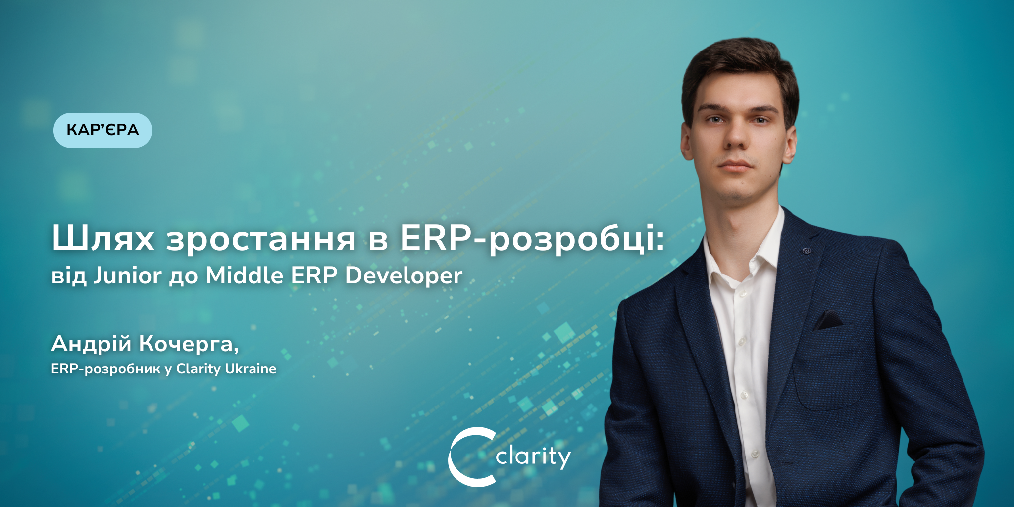 Мій одногрупник тоді працював ERP-розробником і коротко описував це як розробку системи, яка допомагає бізнесу. Коли знайомий запропонував пройти співбесіду в Clarity Ukraine на позицію ERP-розробника, я вирішив скористатися шансом. Хотілося краще зрозуміти, що таке ERP, як живе бізнес і як за допомогою розробки можна створювати корисні рішення.